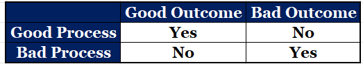 As a general rule, the relationship between process and outcome can be thought of as a simple matrix like so: